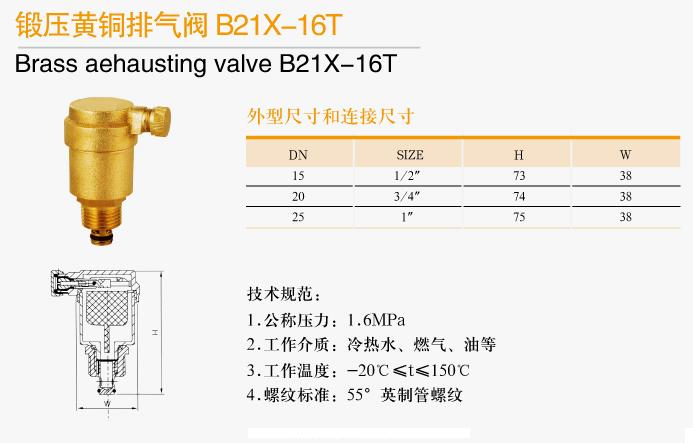 鍛壓黃銅排氣閥B21X-16T技術(shù)規(guī)范: